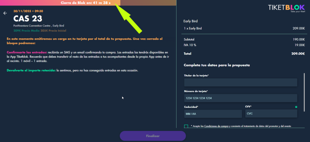 Recuerda que la empresa TiketBlok no cargará ningún gasto de gestión a los asistentes.
